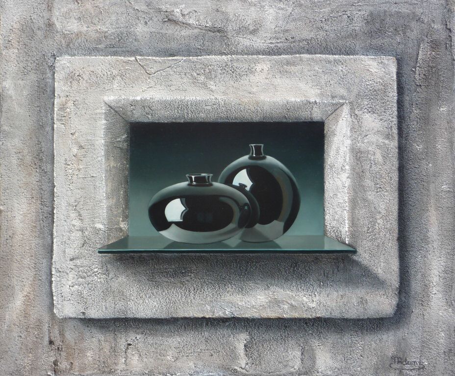 Zwart porselein in stenen nis