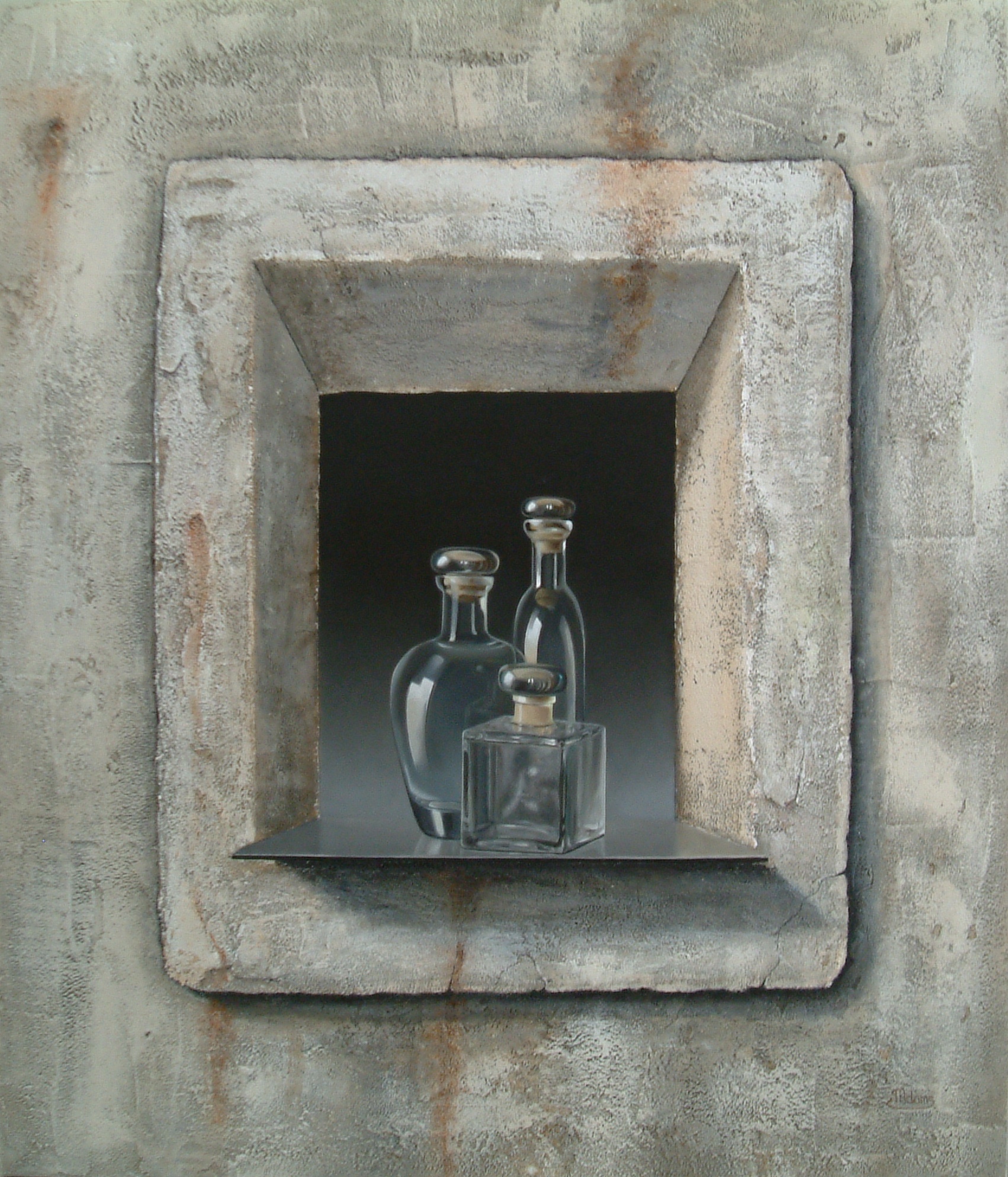 Noud Adams is een moderne realist. Hij schildert voornamelijk stillevens, in een heldere lichte realistische stijl waarbij het spel van licht en kleur een belangrijk motief vormt. Onder andere schildert hij gebruik's en verbruik's voorwerpen. Juist deze voorwerpen laten zich heel mooi vastleggen in dunne lagen olieverf. De voorwerpen die gebruikt worden voor het stilleven, worden op ware grootte geschilderd, deze voorwerpen bepalen dus de grootte van het schilderij. De combinatie van deze aspecten in het stilleven, stralen tezamen een rustgevend beeld uit.